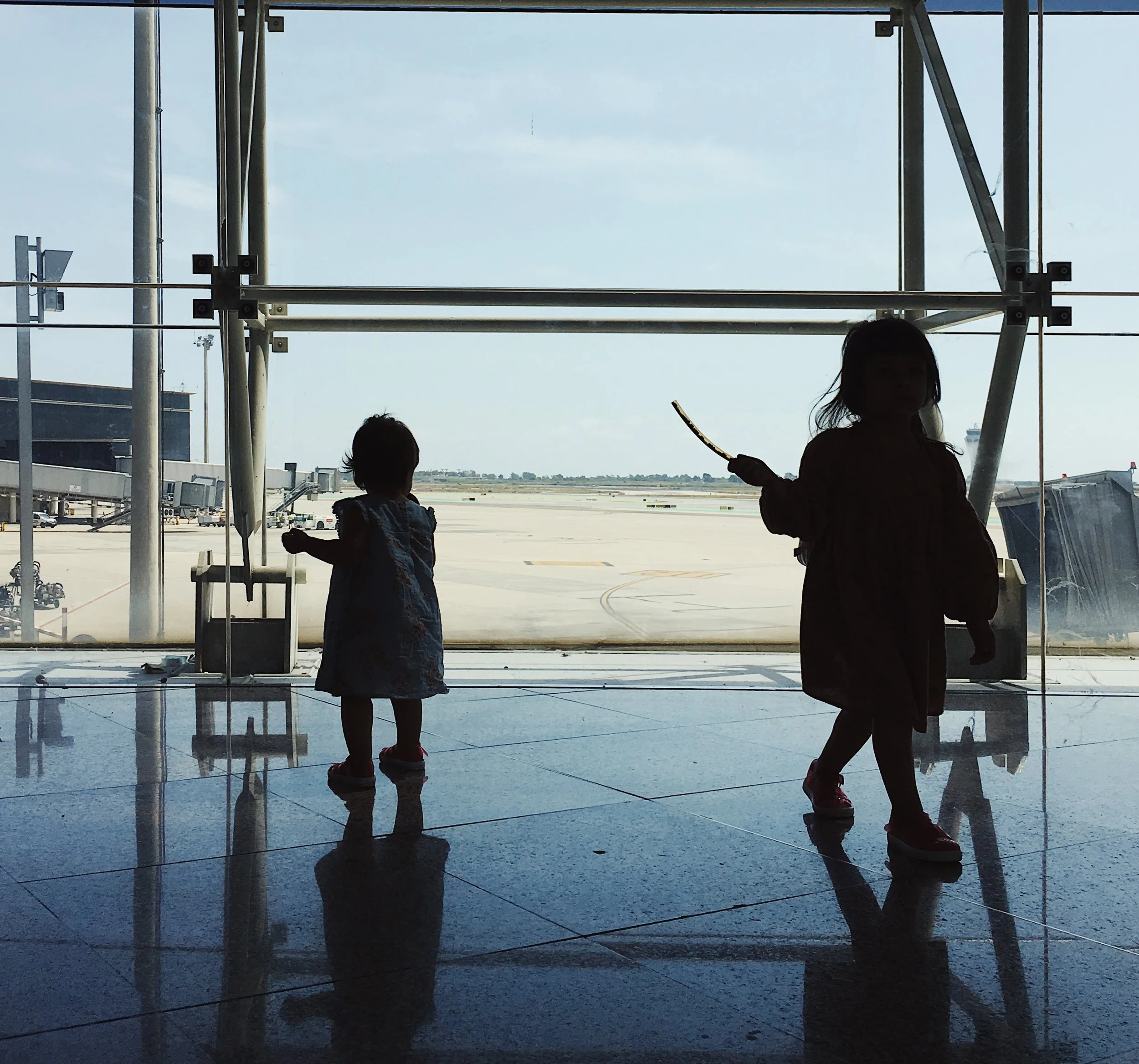 When the girls are tired and it's all too much, I can tell they're about break down, I whip out their snacks, find a quiet corner in the airport and read to them whilst they eat. The other tool we have is babywearing! We both love wrapping our babes and having them close has helped us countless times. Chris has rocked and swayed in the plane aisles with a teeny Zora wrapped up close to him, so she can sleep calmly. Queues at the airport have been much less frought with them both close by for conversations and to save their little tired legs. But I know it's not for everyone! If you do want to get a carrier, then it's always a good idea to look up any local sling libraries near you, so you can try a few styles!